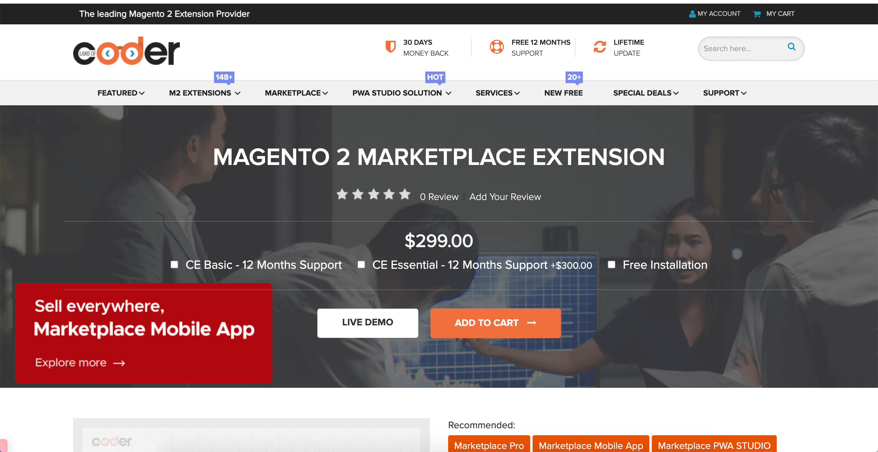 Specifically, Landofcoder divided its marketplace extension into three: Basic ($399), Pro ($999), and Enterprise ($1,599) based on the scale of the business.
