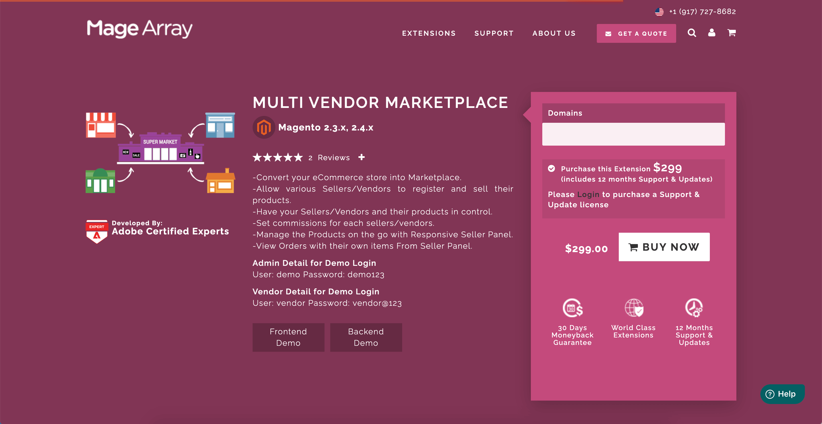 The last suggestion in our list of Magento Marketplace extensions is from MageArray, which offers tons of features to convert a website to a fully functioning marketplace.