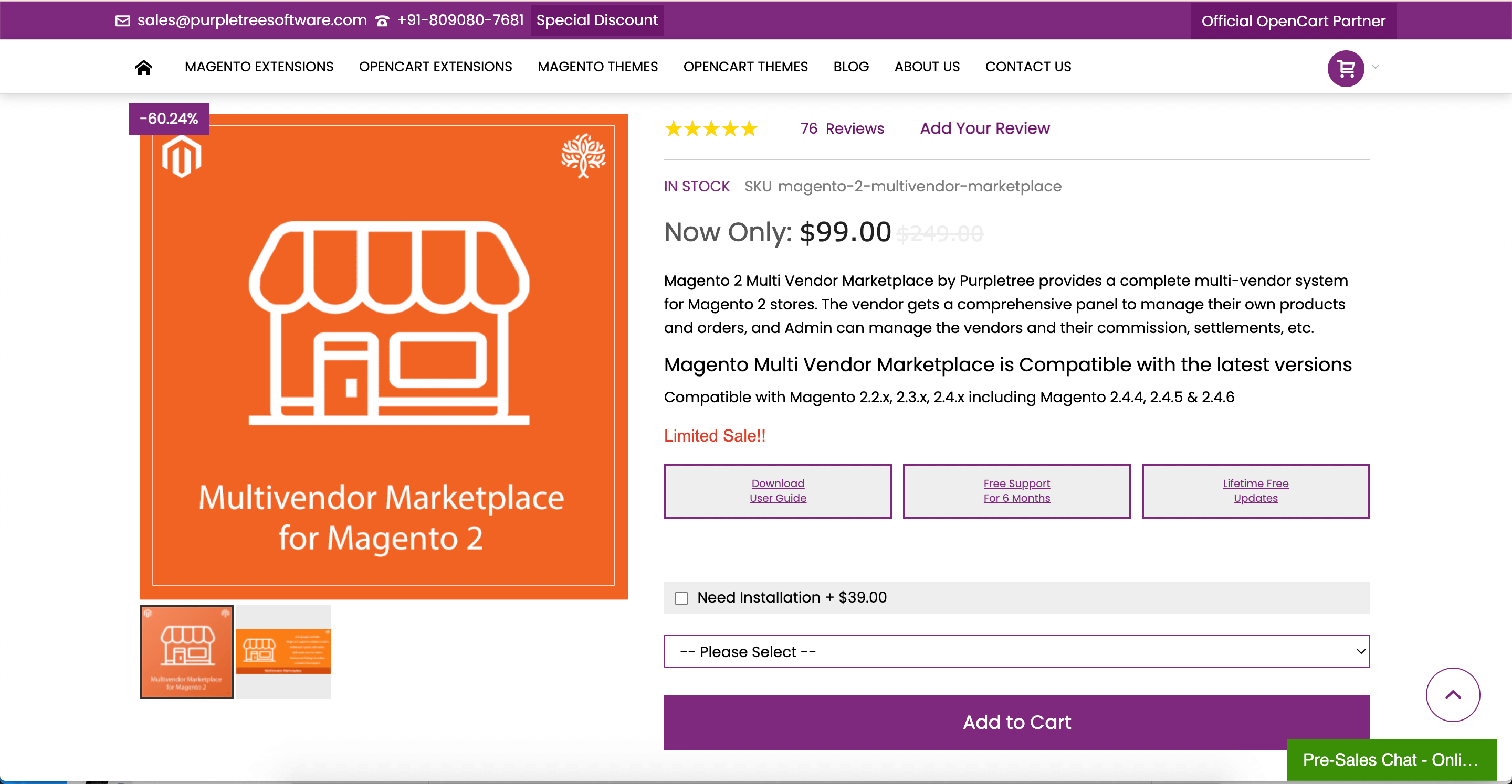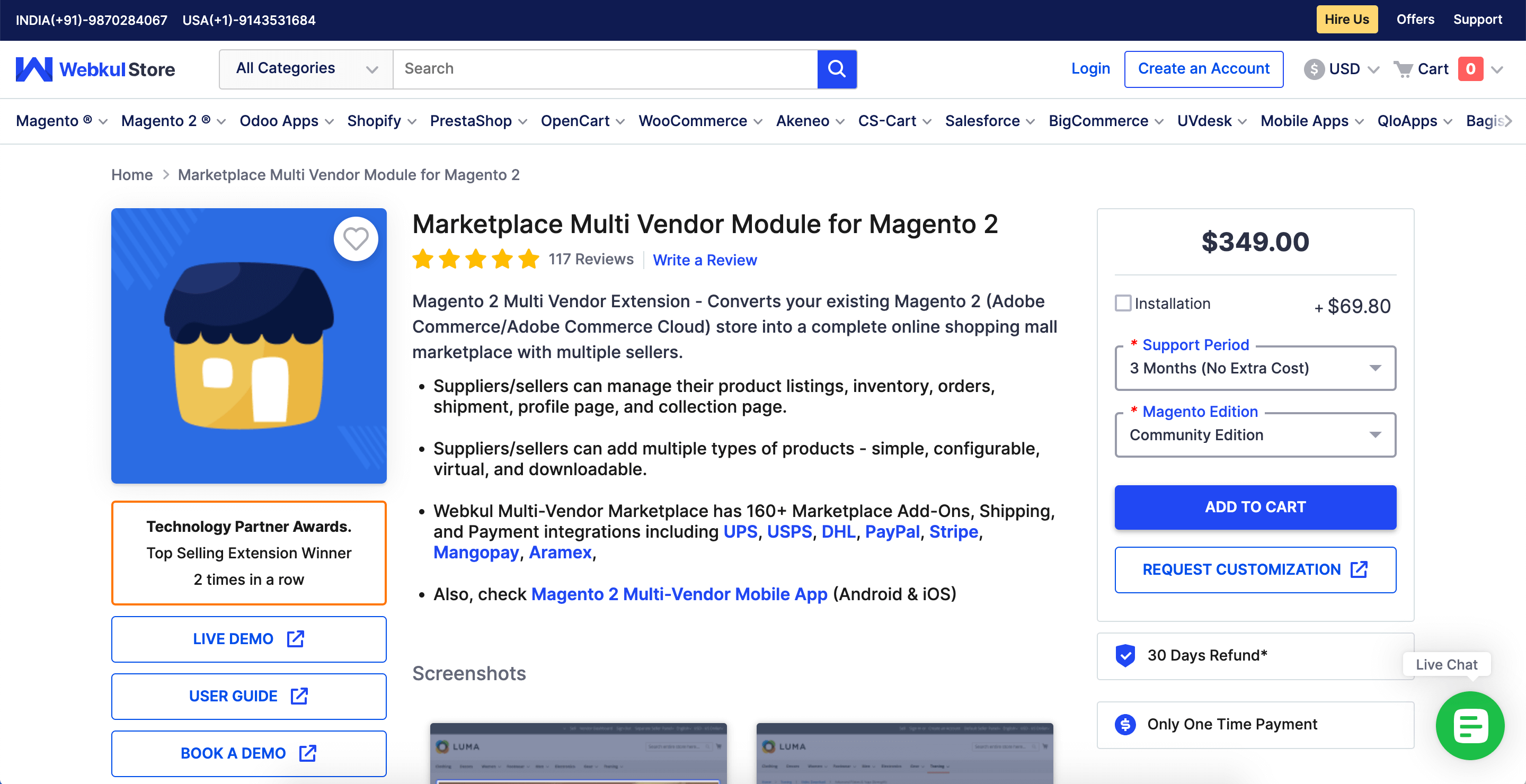 Magento 2 multi-vendor marketplace extension from Magetop will cost $299 for the Community edition and $398 for the Adobe Commerce edition. Moreover, based on the module version, it cost more – $200 more for a professional one and $400 more for a premium one.