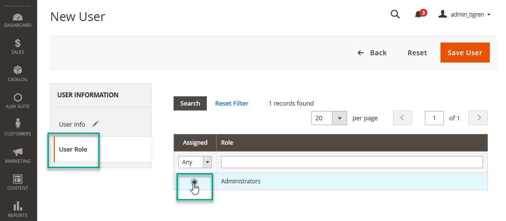 In the Assigned column, you have to mark the checkbox to set the new account as Administrators. Finally, click on the Save User button to complete all settings.