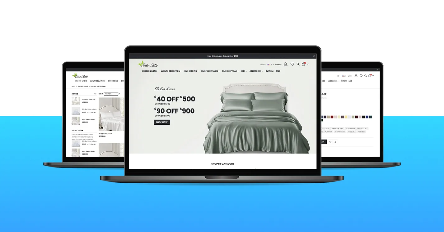 Elle Silk Elle Silk has been delivering high-quality and luxurious silk bed linens and silk sleepwear since 1999. Elle Silk has been delivering high-quality and luxurious silk bed linens and silk sleepwear since 1999. They now become the world’s finest grade 6A long fiber mulberry silk supply with the two bases in Hangzhou in China and Como in Italy. The company website was migrated from Magento 1 to Magento 2 by the Tigren team. And the result is an elegant online store that is good at conversions. PROJECT REQUIREMENTS Apply a ready-made theme for Magento 2 Migrate required database assets to the new website Integrate with 2checkout payment gateway Develop custom functions (product sizes & colours, banner ads) Optimize website speed and performance