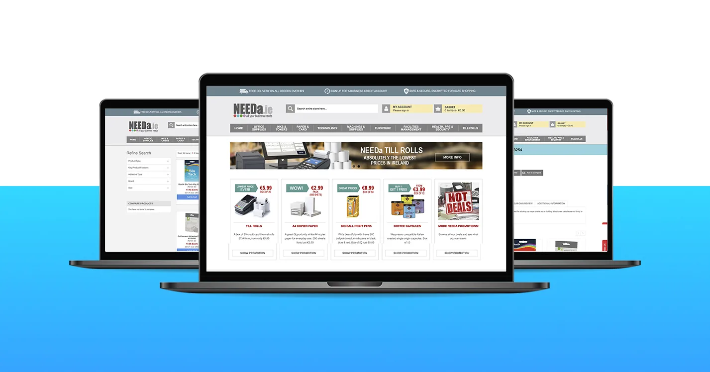 Needa Needa has been the leading company providing office stationery to businesses in Dublin and other cities of Ireland for over 20 years. Needa has been the leading company providing office stationery to businesses in Dublin and other cities of Ireland for over 20 years. This is the one-stop office stationery shop where you can find office machines (e.g.: computers, scanners, and printers) to office furniture such as desktops and dividers. The initial company website was based on Magento 1 platform. When discerning the obsolescence of Magento 1, they decided to migrate to Magento 2 and reap benefits of it. And we are the Magento agency they entrusted their Magento migration to. Our developers transfer the stores’ huge number of products to Magento 2 as well as build a fresh design. Besides, there are several custom functions on the site such as PDF generator, make model advanced search, one-step checkout, etc.