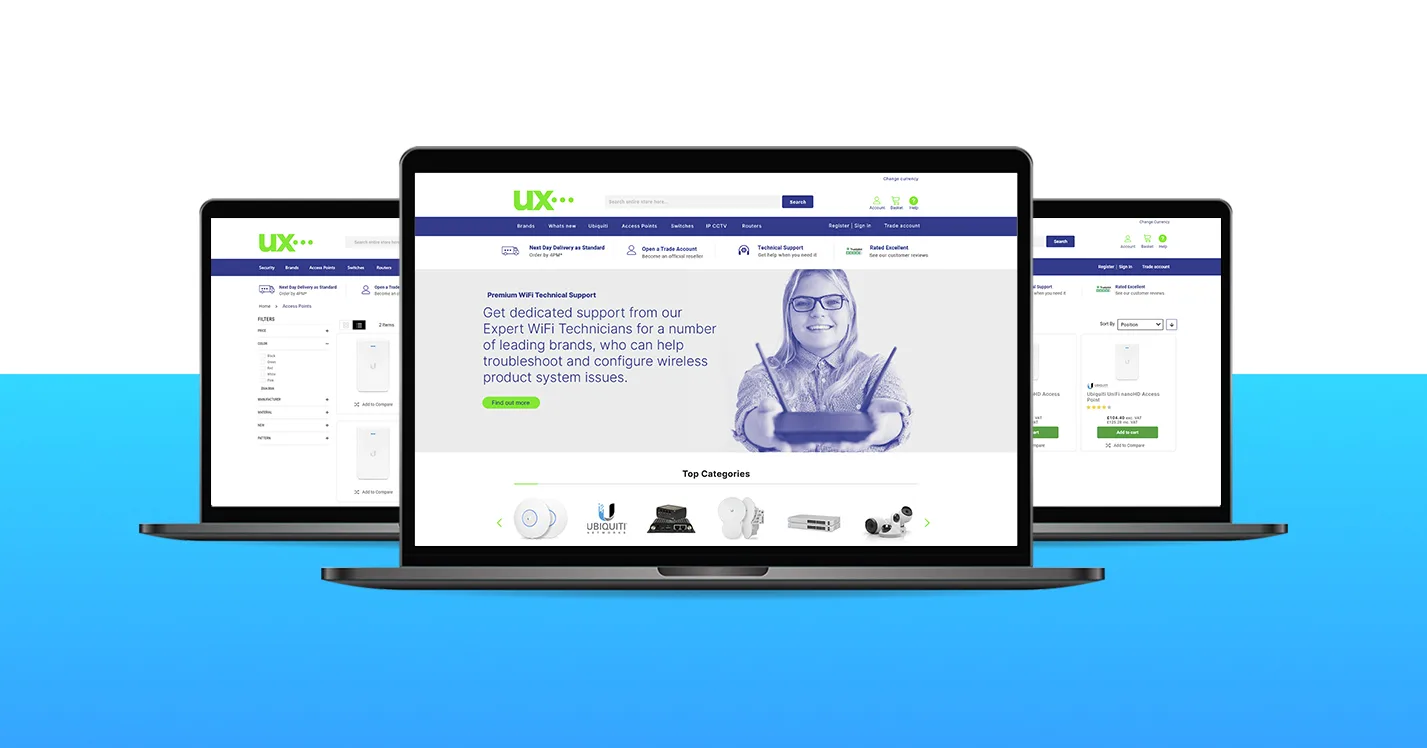 Ux.co.uk Ux.co.uk is a leading worldwide B2B distributor of wireless communications equipment, founded in 2010. Ux.co.uk is a leading worldwide B2B distributor of wireless communications equipment, founded in 2010. This is a one-stop-shop for resellers, installers, and all those who need access to a wide range of high-quality The company has already had native apps on the Apple App Store and Google Play, and now they want to bring the website’s shopping experience to the next level with Progressive Web App. PROJECT REQUIREMENTS We successfully develop a PWA storefront for the website UX.co.uk. The project has a lot of features that required heavily customization. The new UX website brings a new improvement for the UI/UX and enhances customer experience.